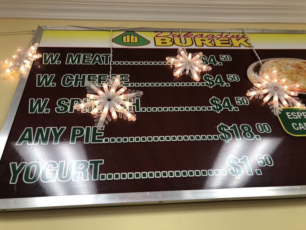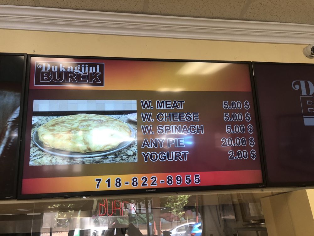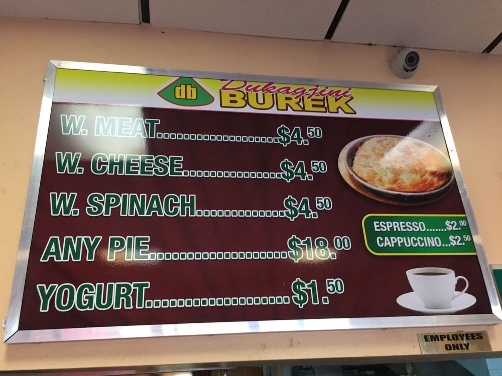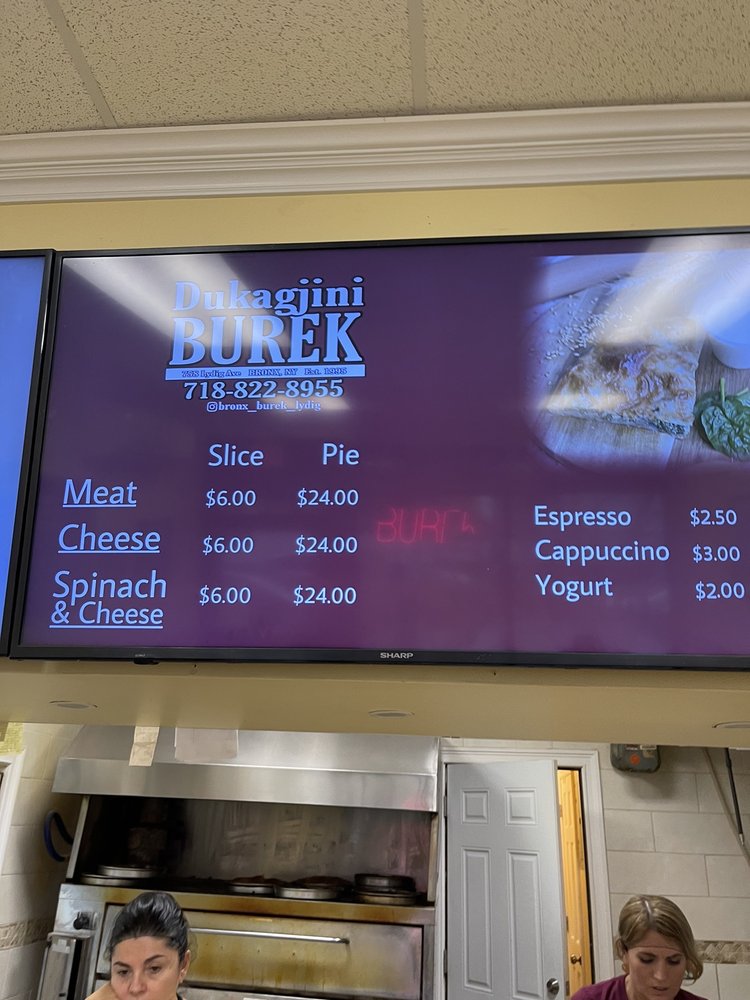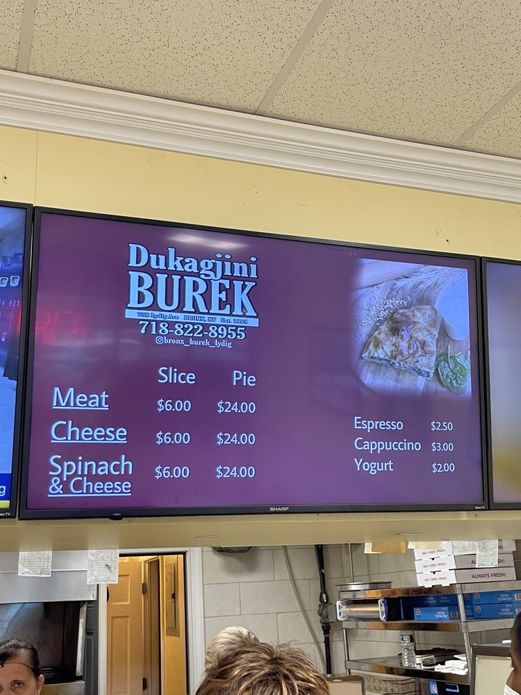 Dukagjini Burek, located in Bronx, NY, is a must-visit for authentic Albanian bureks. The menu is simple yet effective, focusing solely on these delicious pastries filled with options like meat, cheese, and spinach. The crust is always flaky and fresh, with generous fillings that are flavorful and satisfying. The portions may seem small, but the caloric density ensures you'll leave feeling full. The staff is friendly and efficient, creating a warm and welcoming atmosphere. Whether you're a burek lover or looking to try something new, Dukagjini Burek is the place to go for a taste of the Balkans in the Bronx.